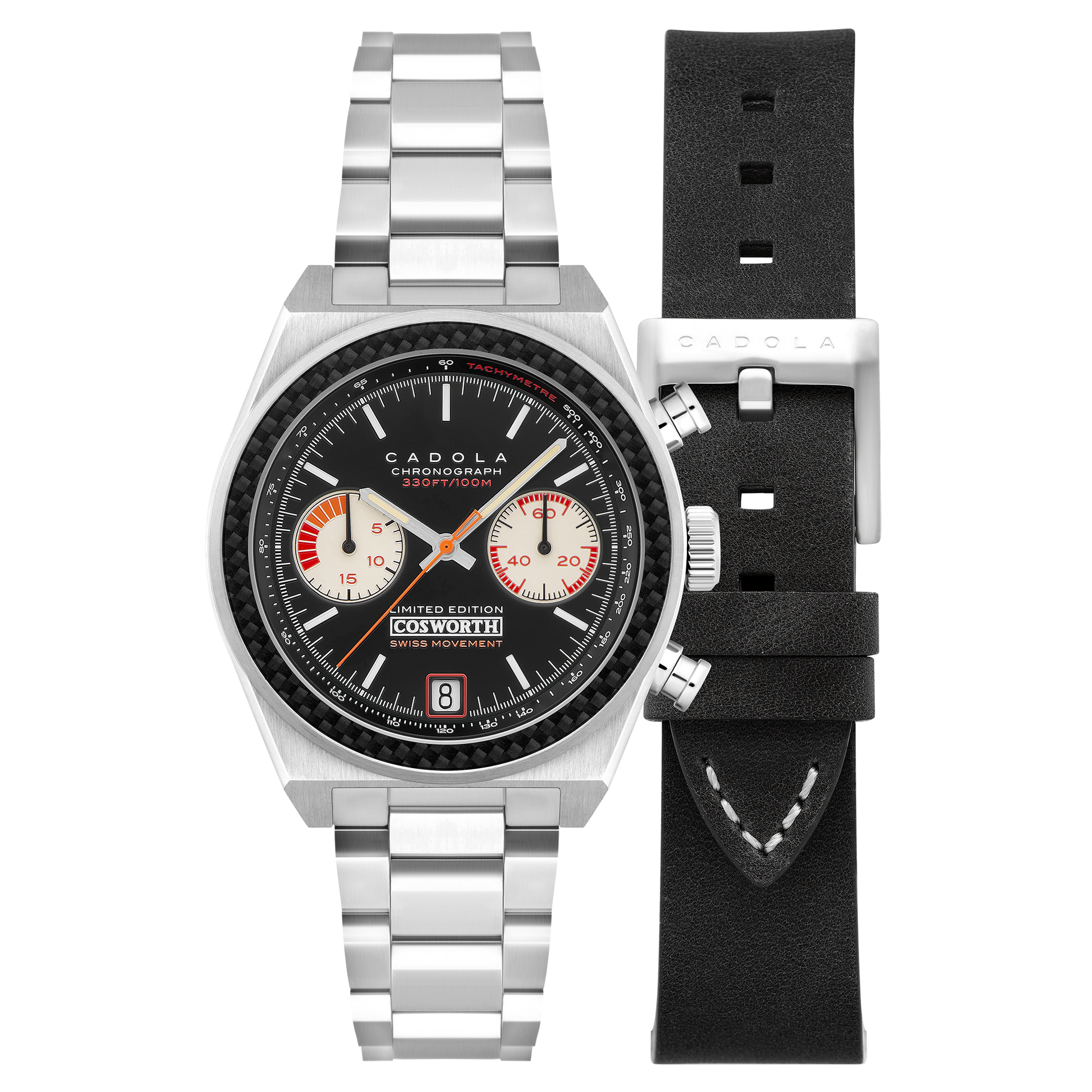 A limited-edition timepiece, the Cosworth Costin features the pinpoint precision of a high-specification Swiss chronograph movement enabling split time measurement. Robustly engineered, the Costin comes with carbon fiber bezel detailing, a bold bracelet design, and an additional strap for a degree of added versatility and style.