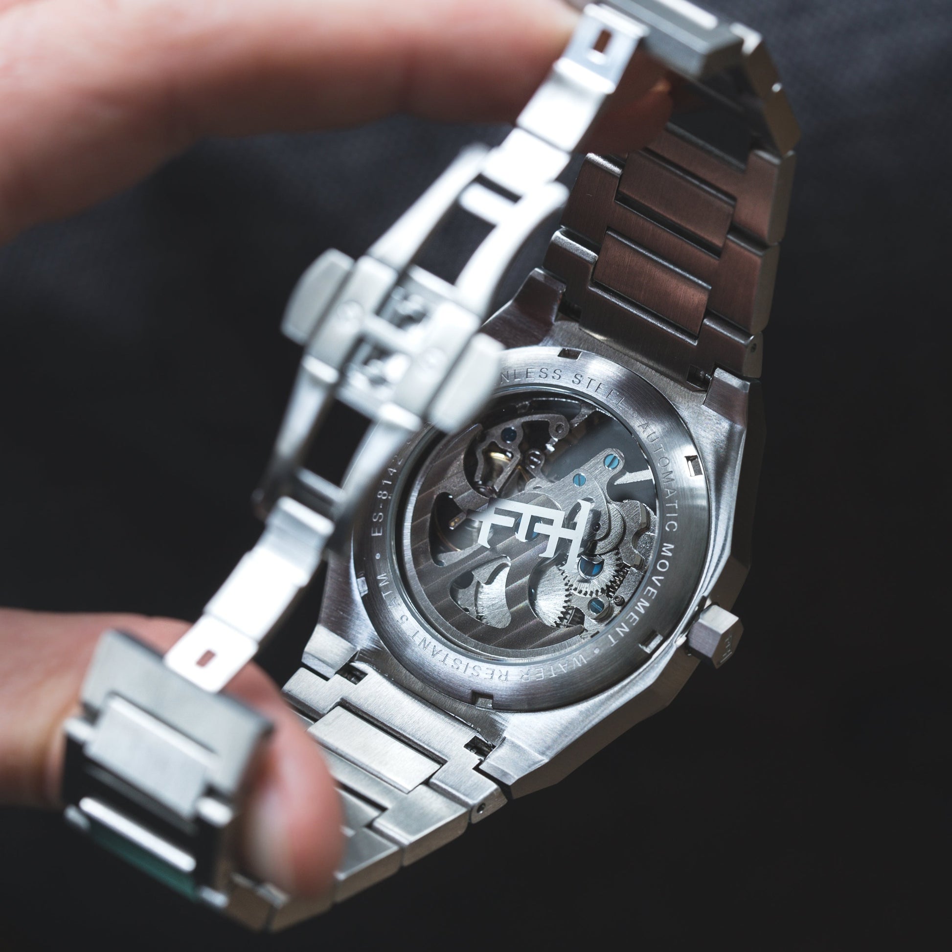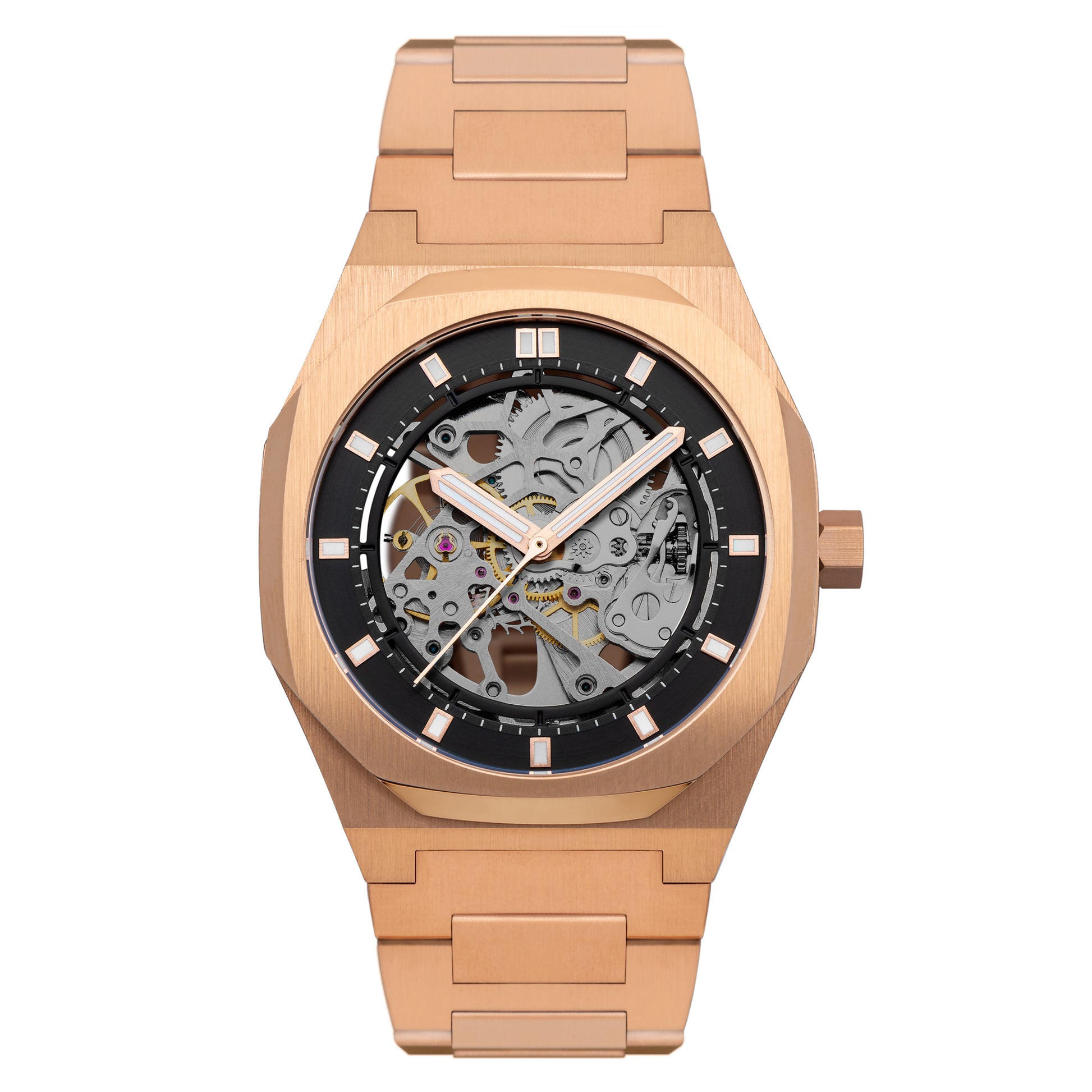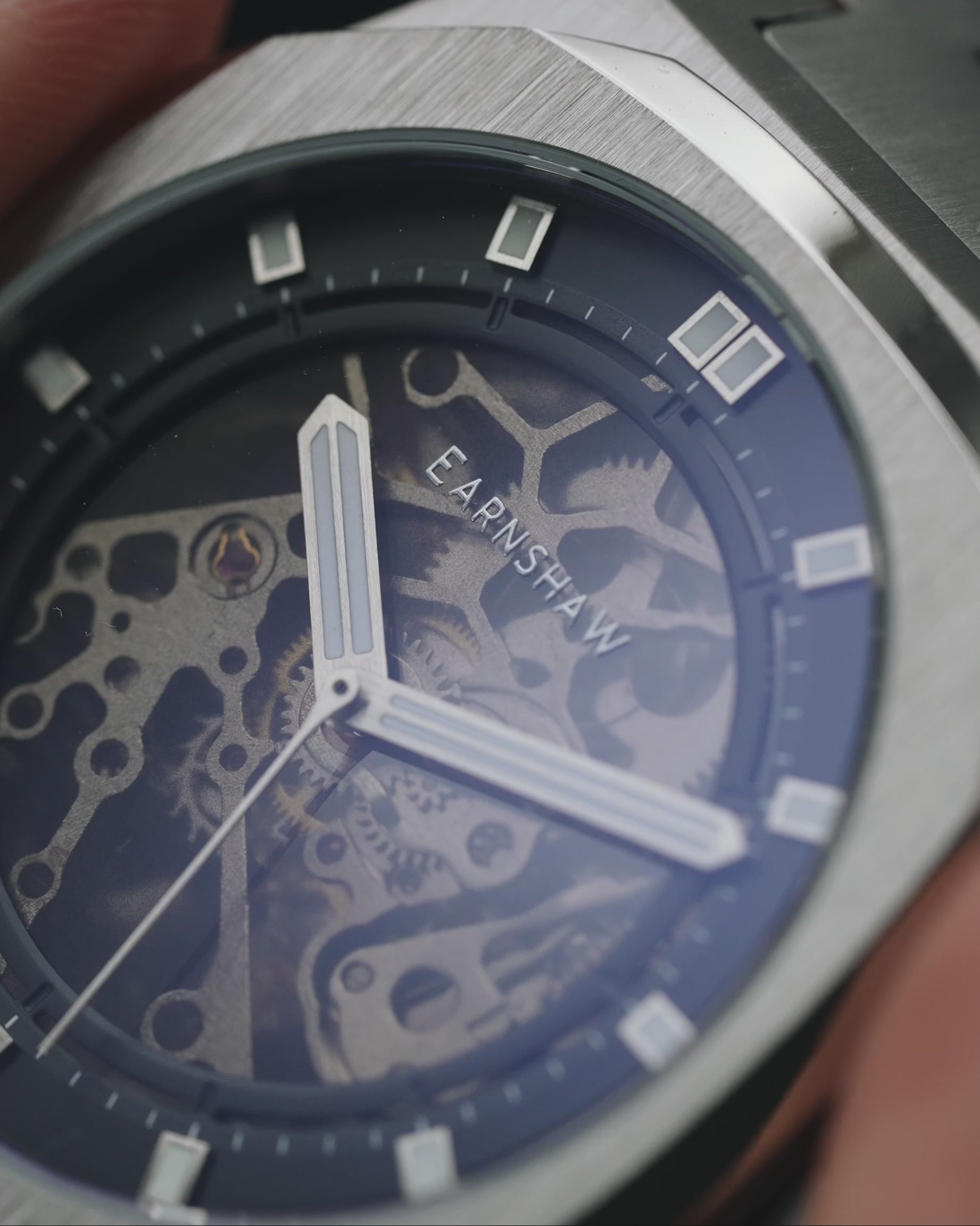 Stylish and sophisticated, the Drake displays the inner workings of its self-powered, skeleton Automatic movement through the dial. A full expression of centuries of watchmaking.