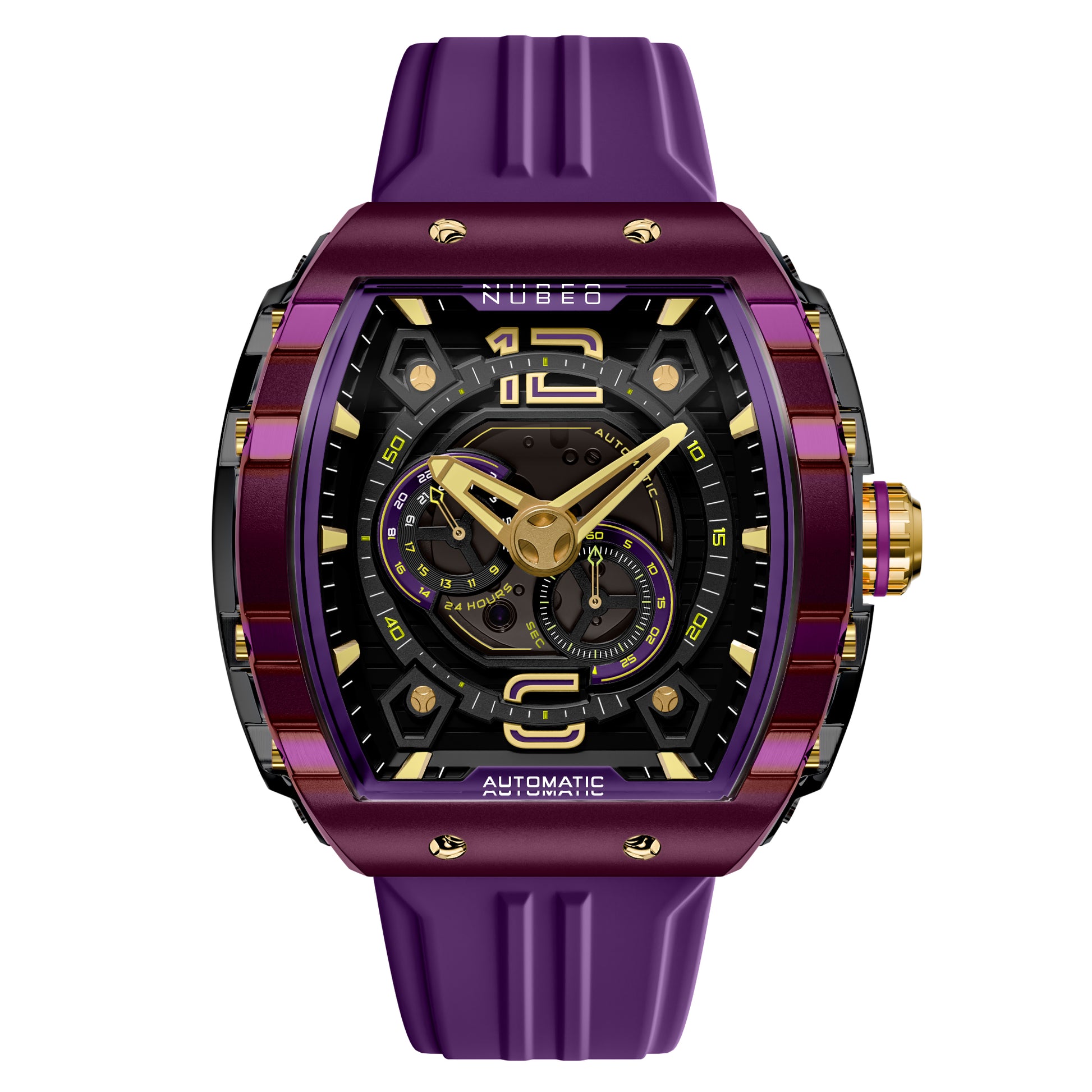 A new addition to Nubeo's beloved collection, Magellan 24 Hour Automatic features a signature tonneau-shaped case with interconnected parts, and a Japanese automatic movement with a 24-hour feature. This timepiece boasts both style and functionality. Available in bold and vibrant colors, it's a stunning and captivating addition to your watch collection.